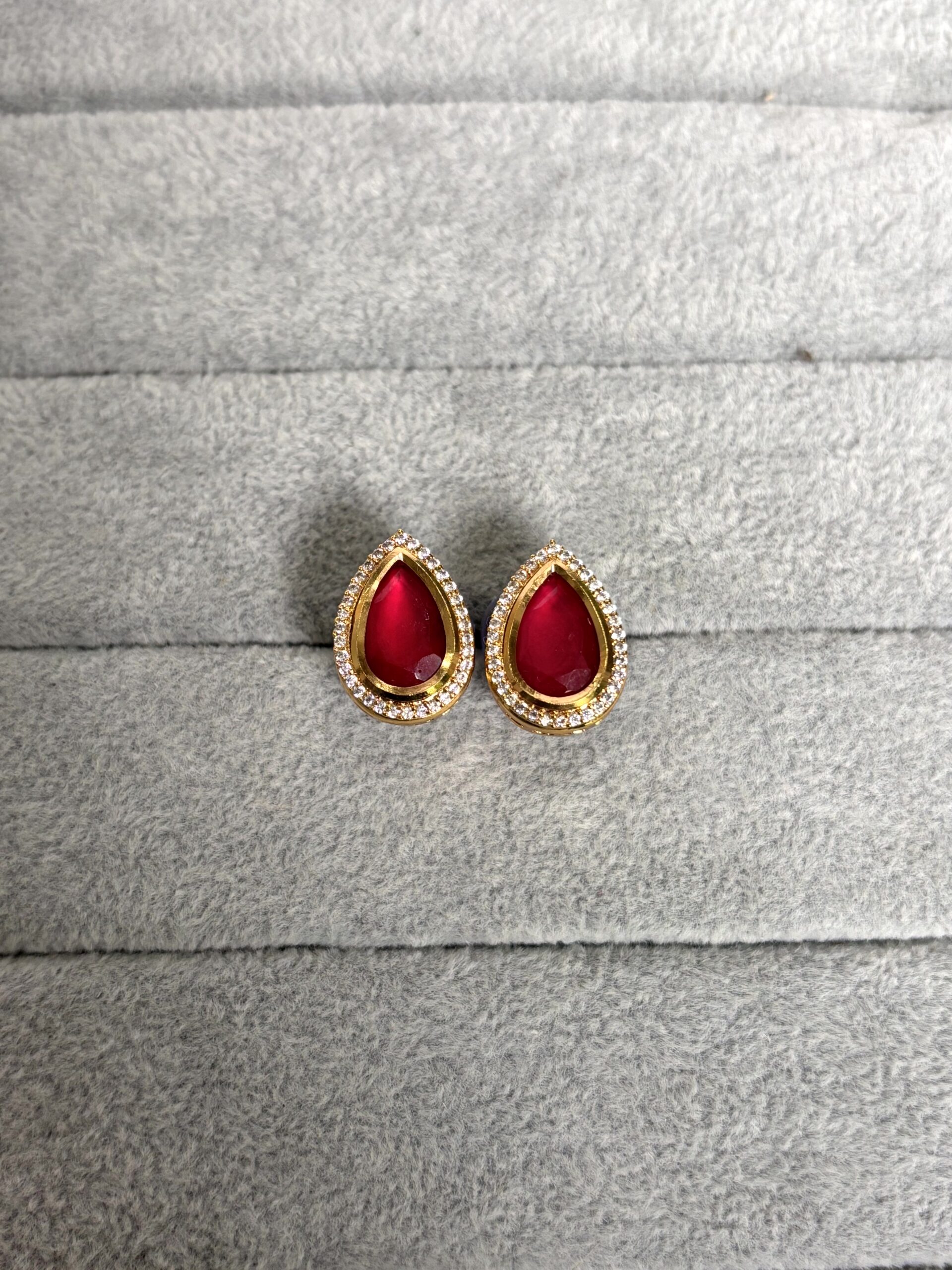 Add a pop of regal charm to your look with Aarohi Ruby Kundan Studs. Featuring deep ruby red stones set in traditional kundan work, these studs are a timeless pick for festive and wedding outfits. Lightweight yet bold, they bring out the richness of ethnic attire.