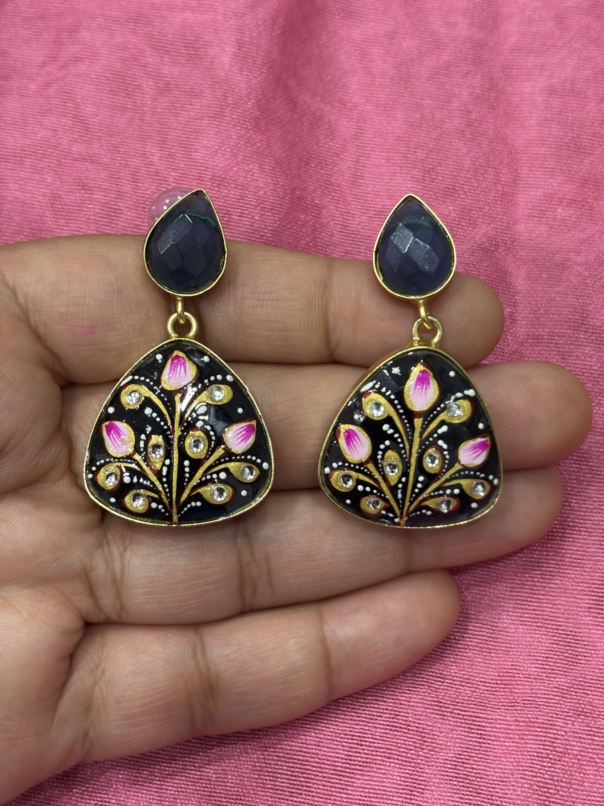 Store your earrings in a cool, dry place — away from sunlight. Always wear your jewelry after applying perfume, makeup, and hair spray. Use a soft cotton cloth to clean earrings after each use to remove oils and sweat. Traveling? Pack them in separate compartments or soft pouches to avoid tangling or chipping. Avoid contact with water, especially for painted, beaded or oxidized items.