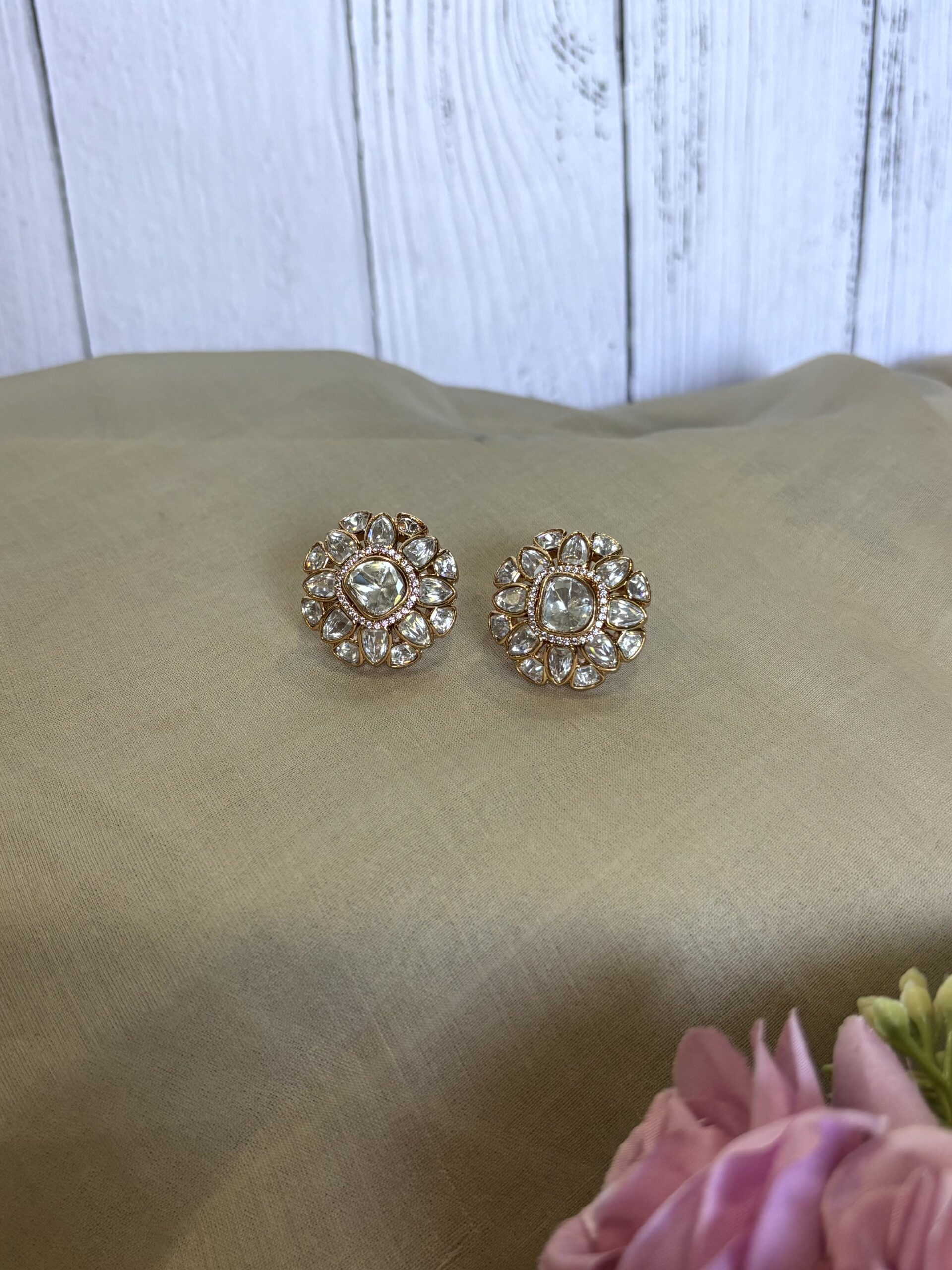 Rhea Floral Polki Moissanite Studs